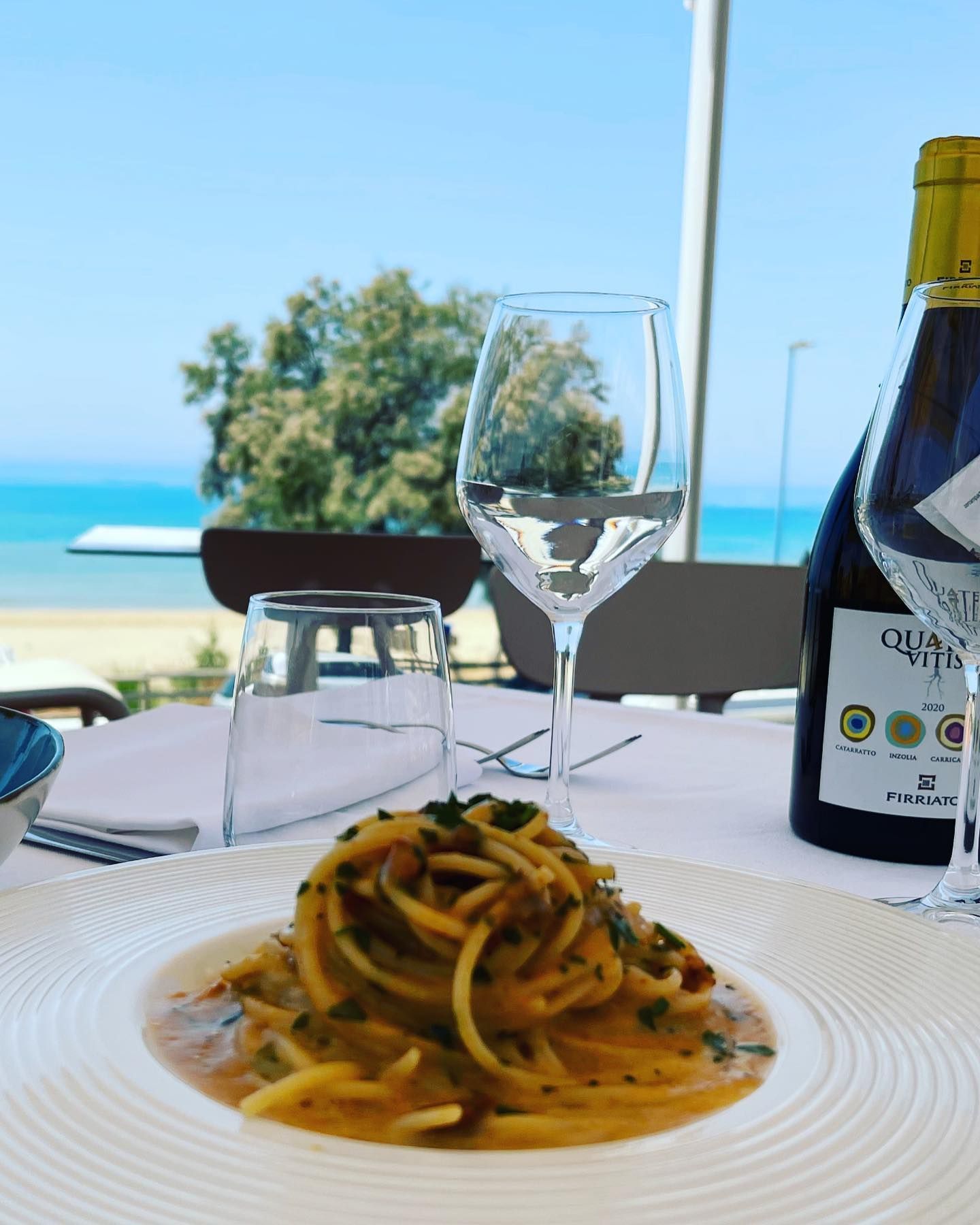 Frontemare è il ristorante dove freschezza e sapore del mare si incontrano in ogni piatto. Selezioniamo quotidianamente il miglior pesce fresco per proporvi specialità irresistibili: dai raffinati crudi di mare al tonno in crosta di semi di papavero, dagli Spaghetti ai ricci alle tradizionali sarde a beccafico. Tra le nostre proposte imperdibili spiccano il fritto misto di pesce e la Scoppiata di cozze con clorofilla di prezzemolo e crostoni aromatici. Non può mancare l’assaggio dell’insalata di cernia marinata con ciliegino e sedano. Ogni piatto è studiato per esaltare i sapori autentici e sorprendervi con abbinamenti creativi.